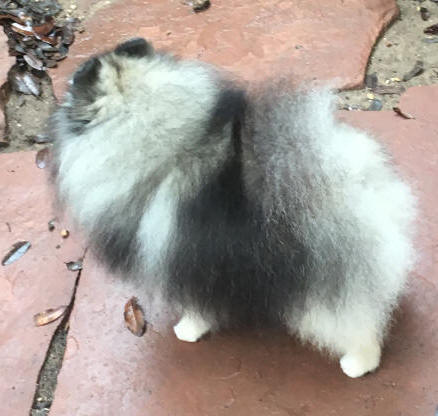 Mighty Mouse just joined our RobCary Poms last summer. He is a handsome, 4 1/2 pound, 7 year old wolf sable. He has a gorgeous correct textured, normal coat, wonderful temperament, wonderful black pigment, nice ear set, very short back, nice tail set, good structure. We now have two young litters sired by him that look very promising.