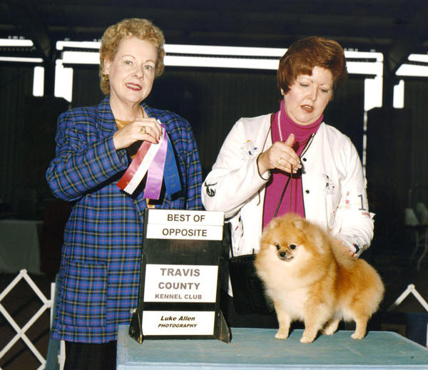 CH Starfire's Between The Sheet ROMX 5-26-2001 to 11-29-2019 Dam of 7 champions. Satin is the dam of 7 CHs, is 15 years old and retired to being "Queen of Rob Cary Poms".
